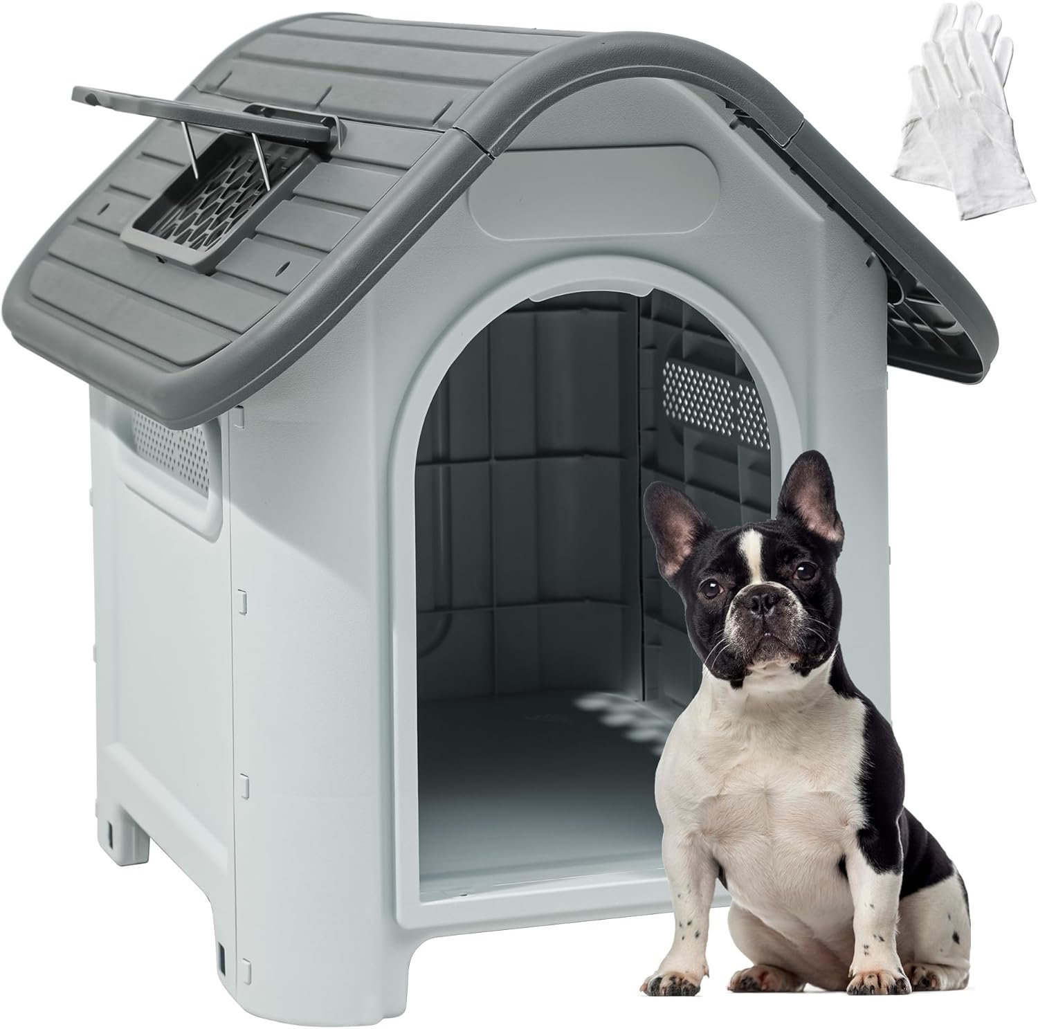 - Dog House for Small Canines: Measuring 30”L x 23.3”W x 26”H in size, with door dimensions of 16.1”W x 10.2”, this plastic dog house provides a spacious home for your Pomeranian, Teddy Bear Dog, etc