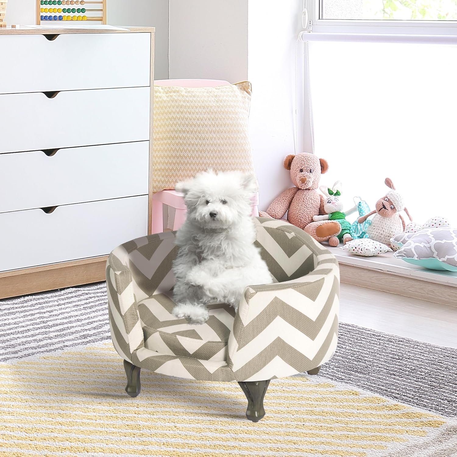 - DOG BEDS: Created with premium durable fabric upholstery Fabric, our Dog Beds for Small Dogs and Medium Size Dogs are perfectly completed with carved wood legs to offer a timeless style
